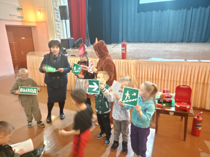 После проведения обучающих игр, которые включали интерактивную деятельность, направленную на развитие навыков и получение знаний в игровом формате, вместе с добровольными помощниками Мишкой и шустрой Искоркой инструктором НРО ВДПО были организованы практические занятия. Для всех присутствующих был проведен инструктаж по пользованию первичными средствами пожаротушения – порошковым огнетушителем, знакомство с пожарными знаками, которые в обязательном порядке необходимо знать каждому.