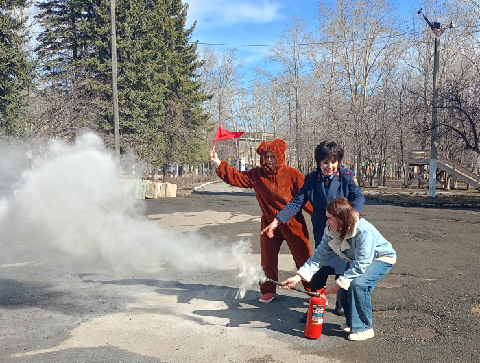 На площадке возле ДК дети были не просто пассивными слушателями, а активными участниками образовательного процесса. Высыпавшаяся в сквер детвора, к своей огромной радости, могла собственноручно попрактиковаться в тушении условного пожара огнетушителем ОП-5. Самые активные из участников встречи были поощрены книжками-раскрасками «Азбука безопасности» и тематическими памятками.