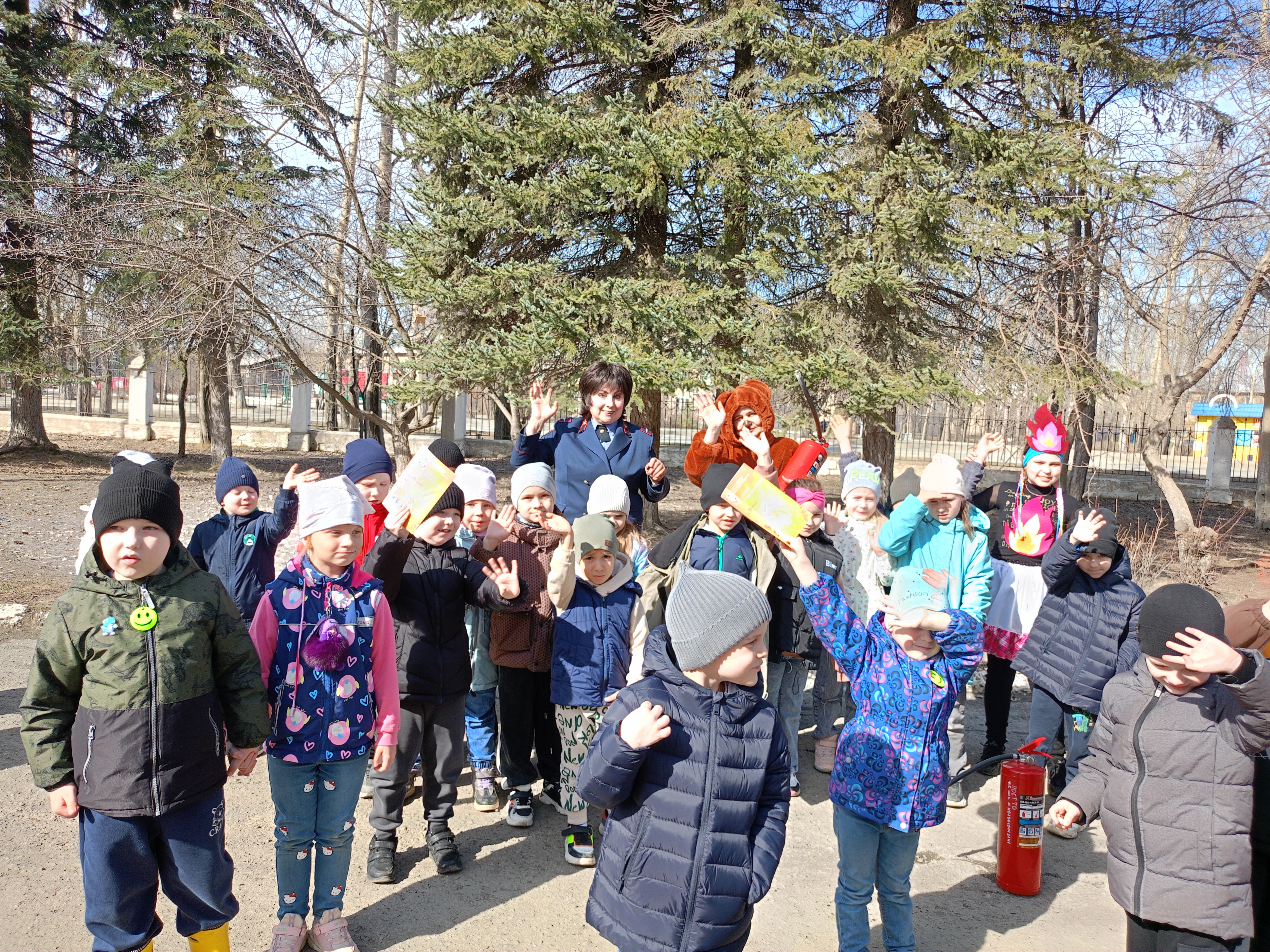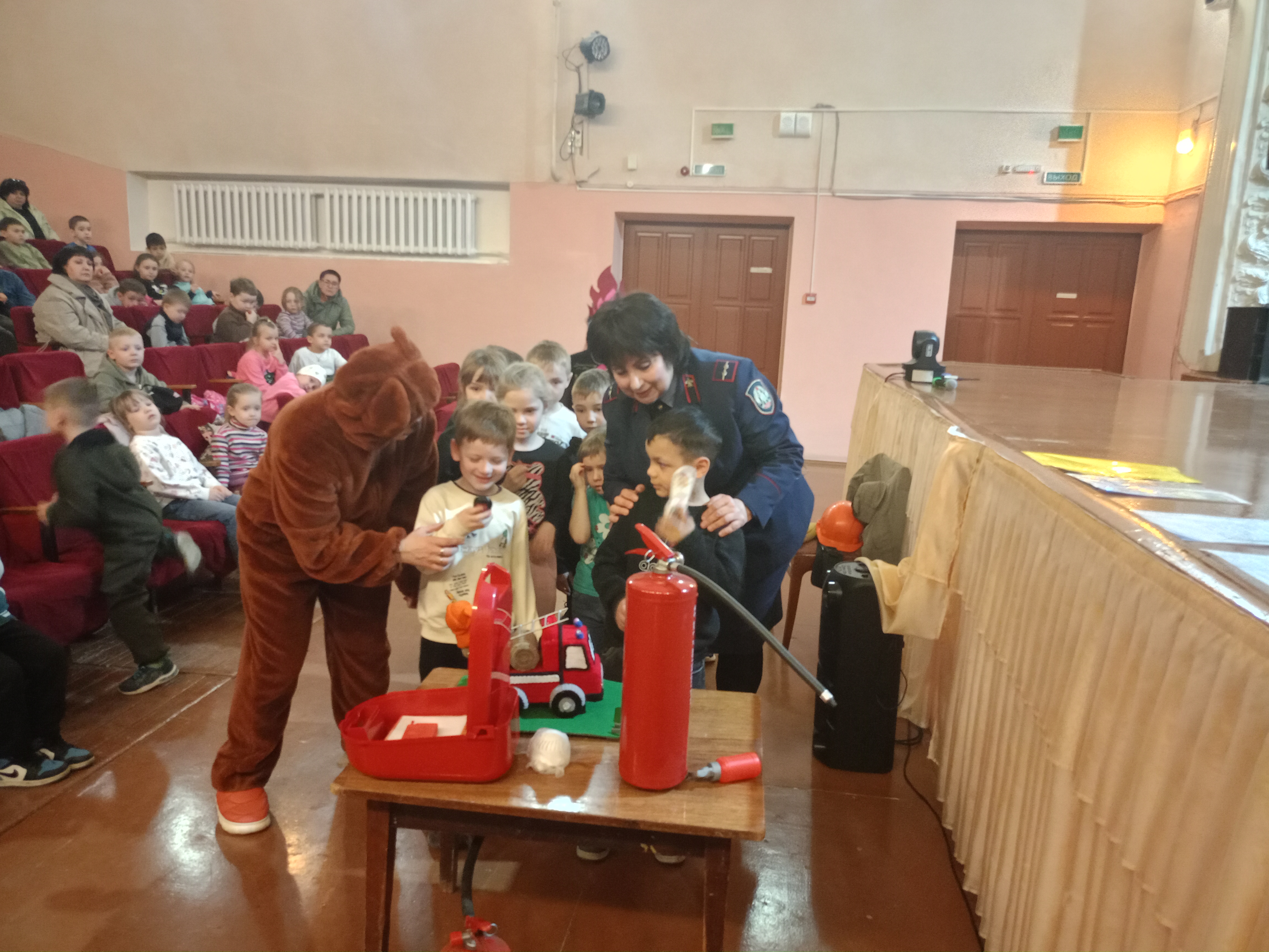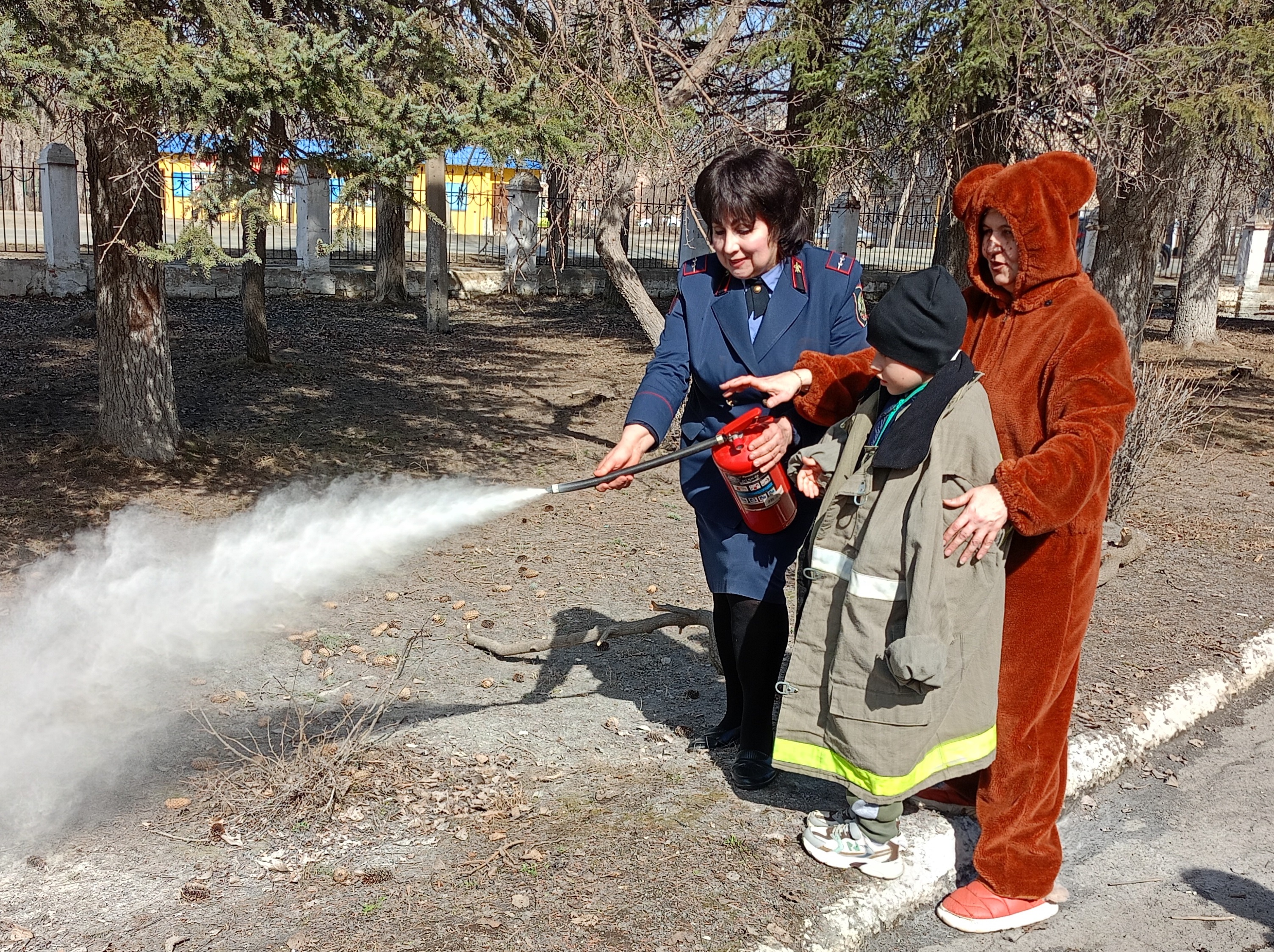 На площадке возле ДК дети были не просто пассивными слушателями, а активными участниками образовательного процесса. Высыпавшаяся в сквер детвора, к своей огромной радости, могла собственноручно попрактиковаться в тушении условного пожара огнетушителем ОП-5. Самые активные из участников встречи были поощрены книжками-раскрасками «Азбука безопасности» и тематическими памятками.