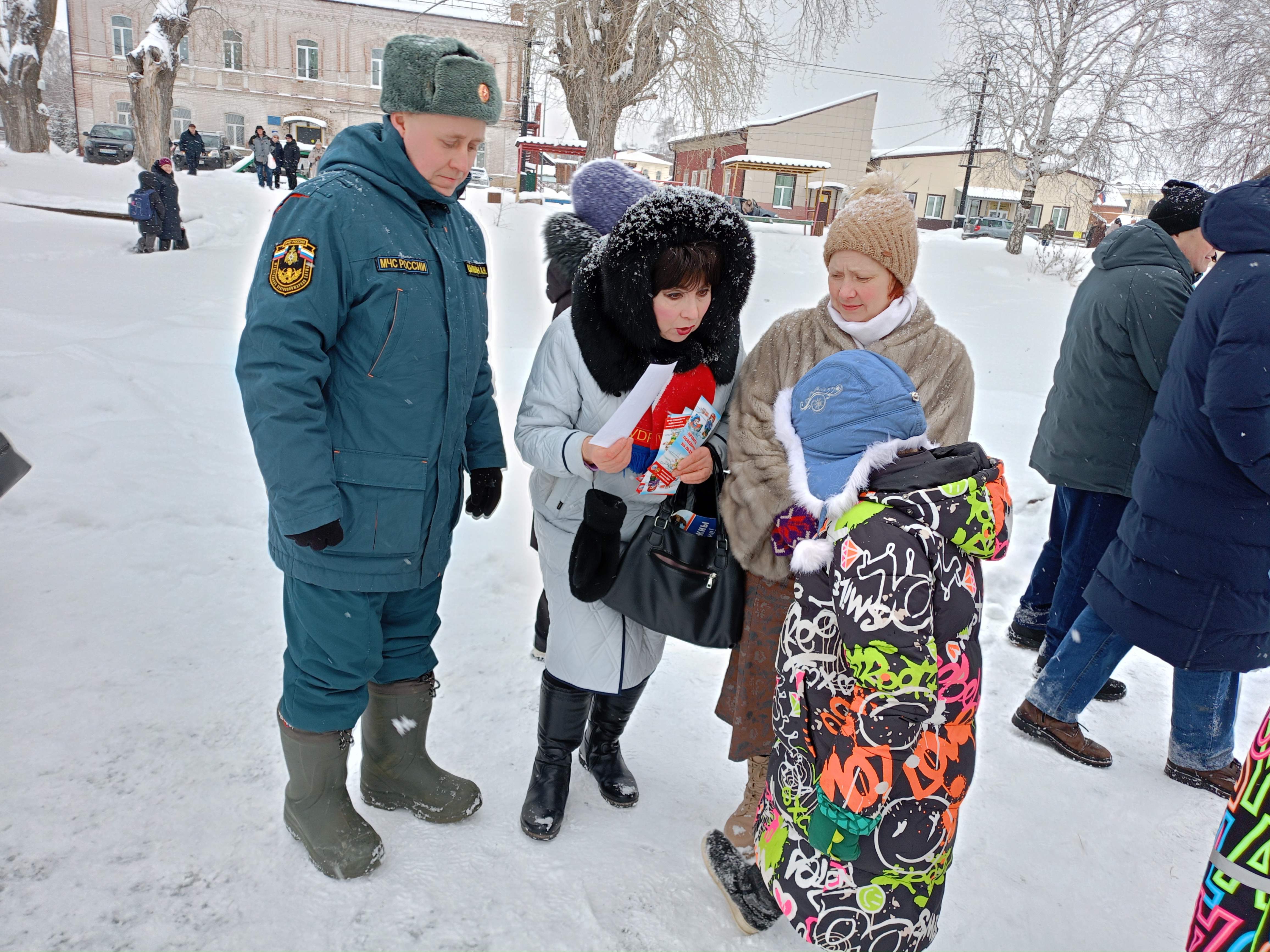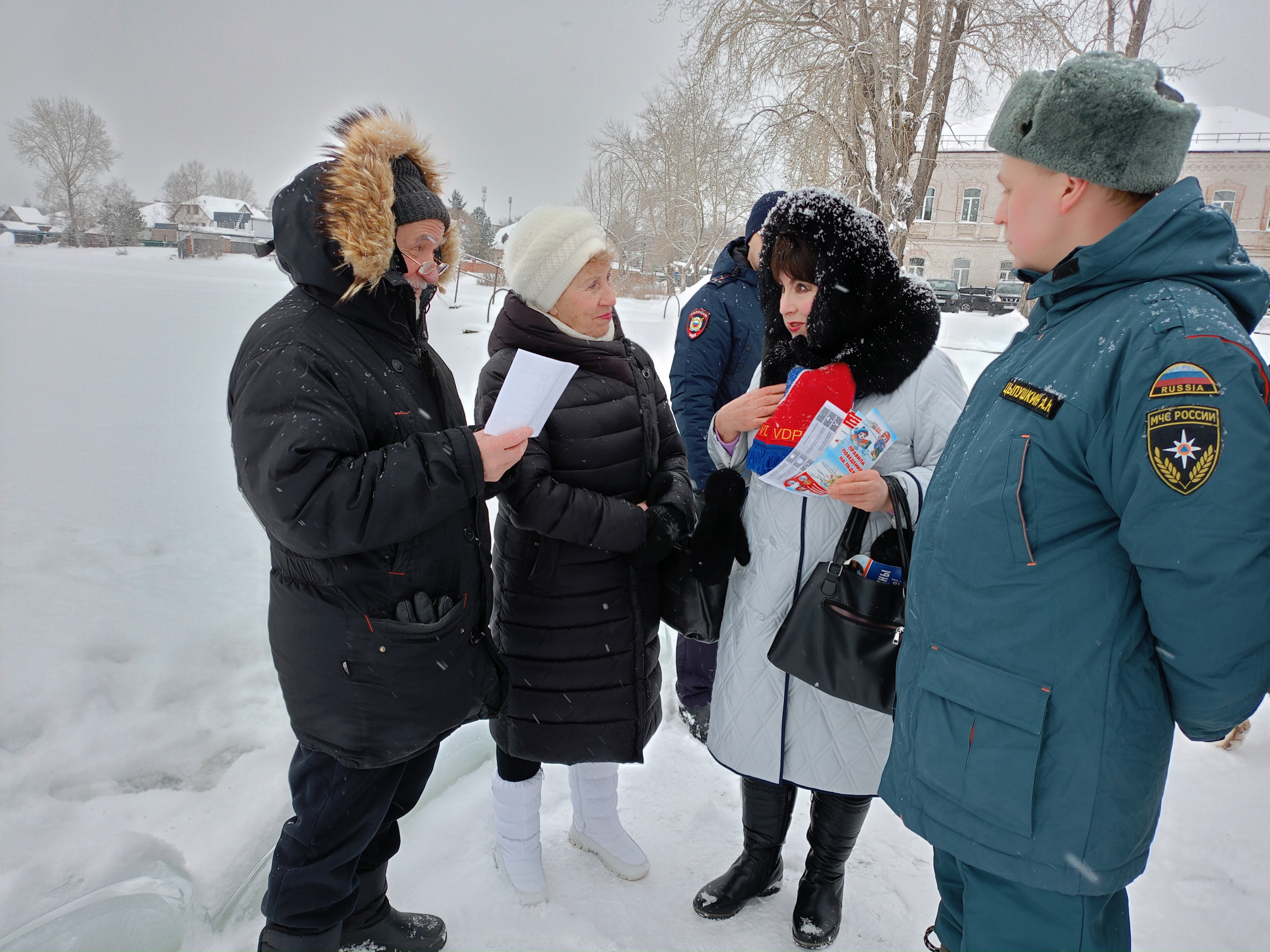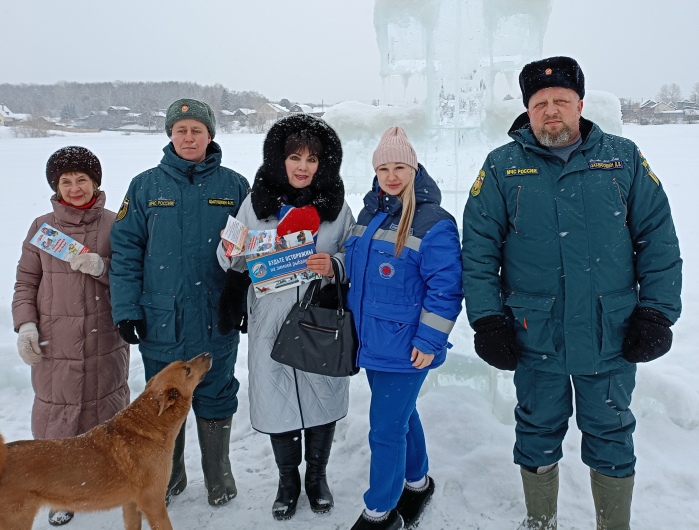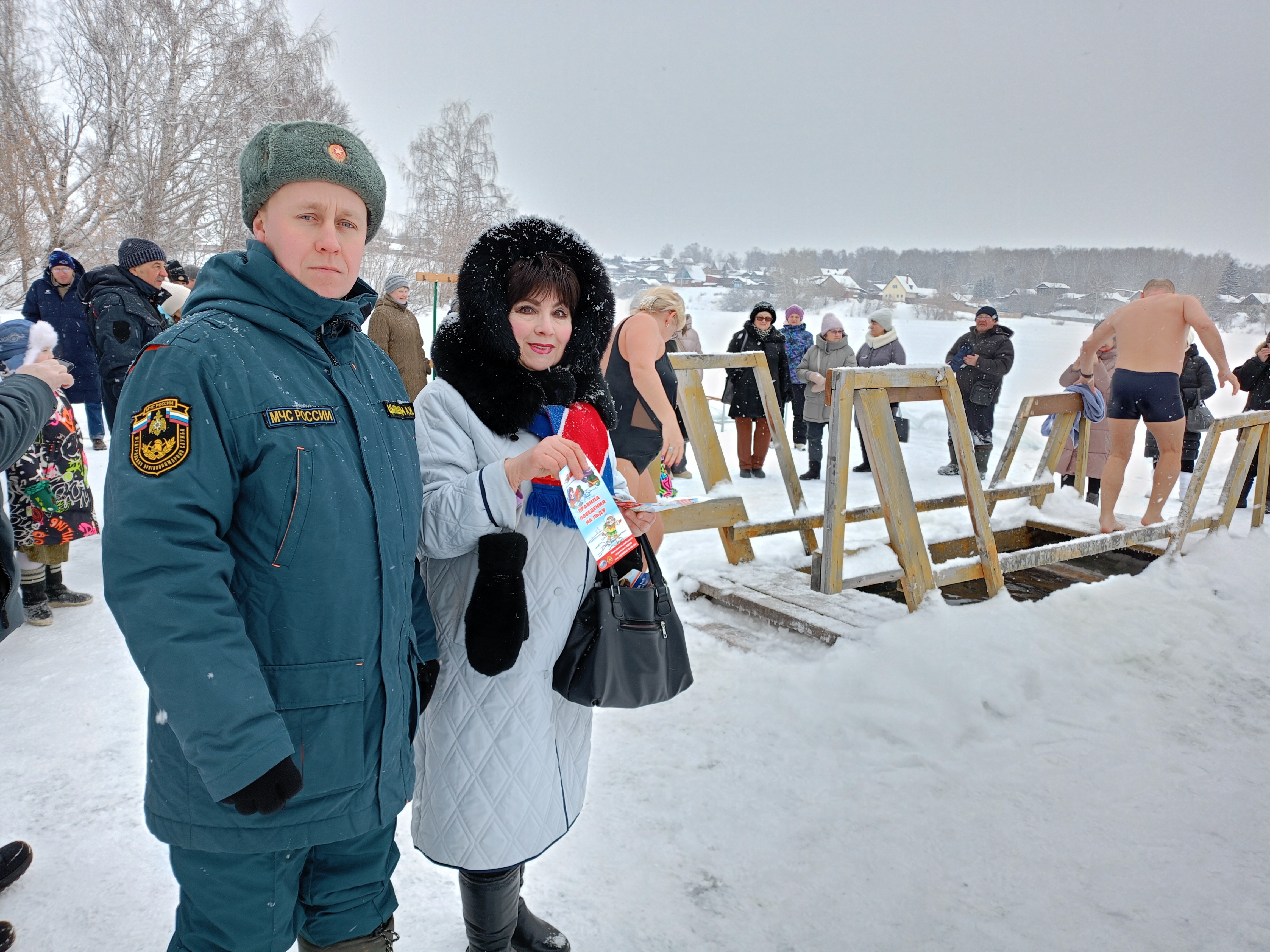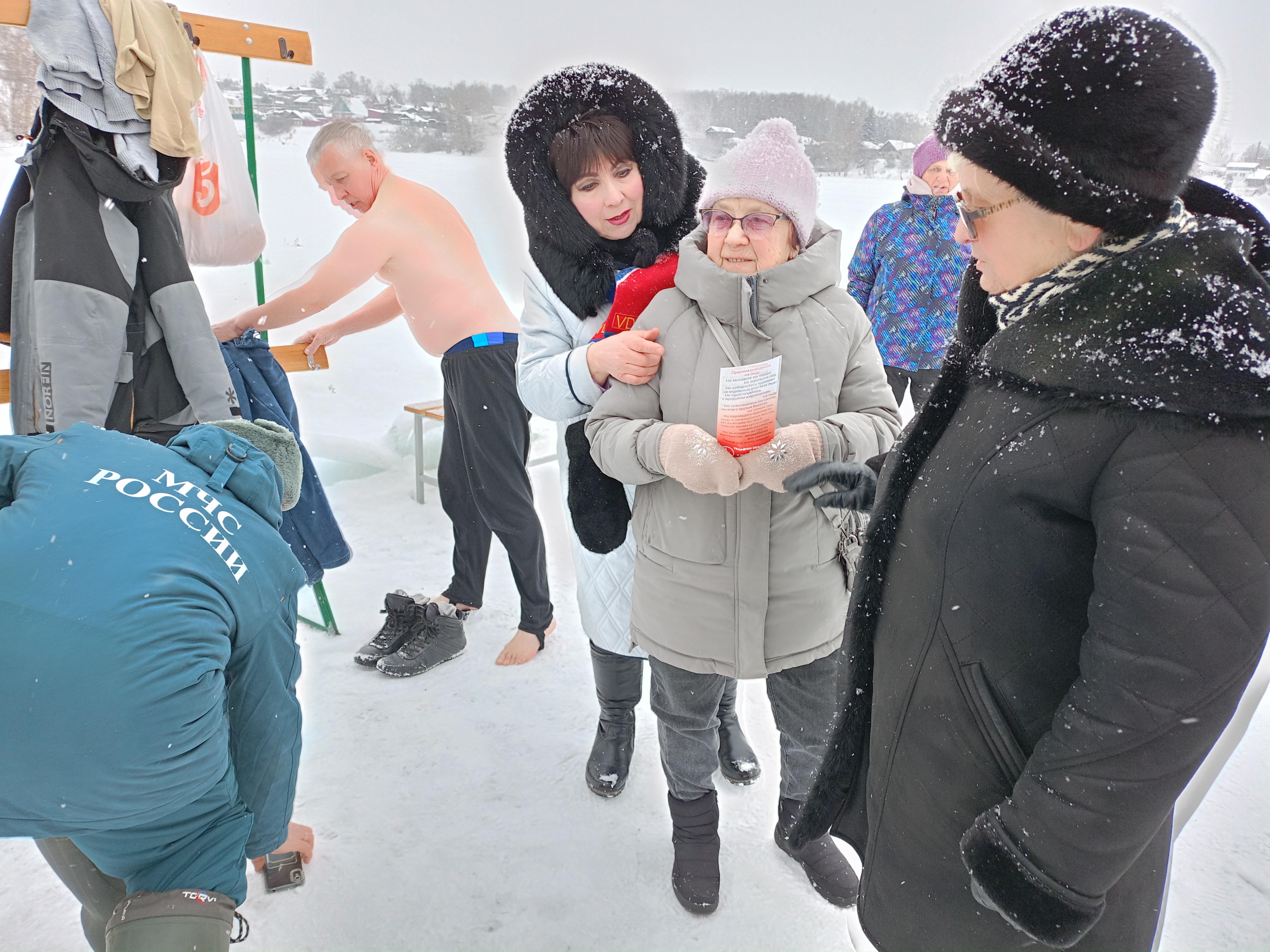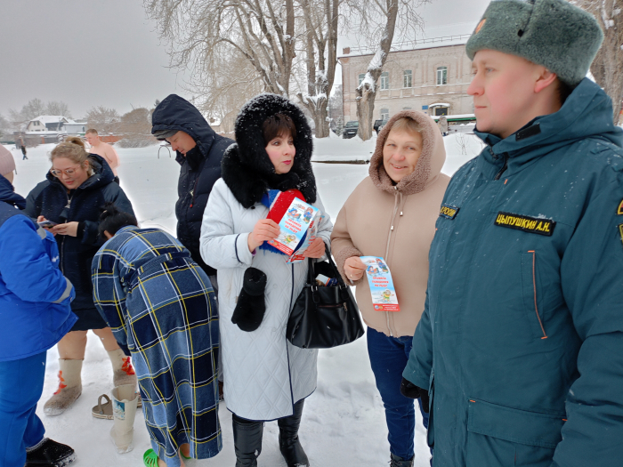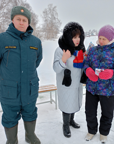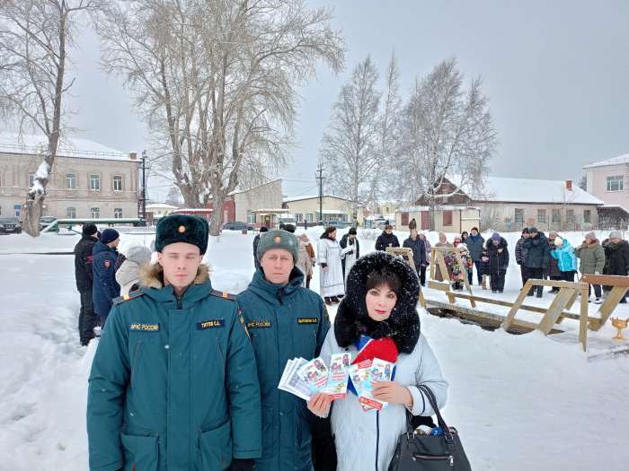 В целях безопасности инструктор заострила внимание присутствующих о категорическом запрете сушки мокрого белья после принятия водных процедур в ледяной воде пруда над газовой питой и непосредственно на обогревательных приборах. Всем были вручены памятки «Тонкий лед», листовки «Крещенские купания», «Противопожарная безопасность».